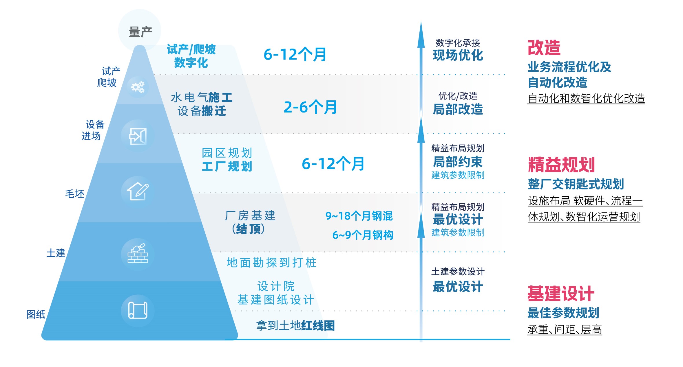 承重规划按标准,过度/过轻,投资浪费 层高/间距未考虑制造特性,空间利用不佳 缺少全局规划,局部过早,拓展性不够